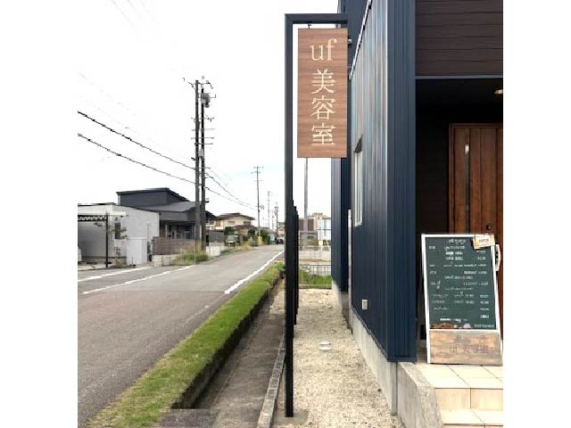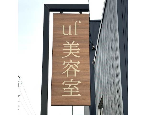 『uf美容室』様の吊り下げポールサインを製作施工させていただきました。